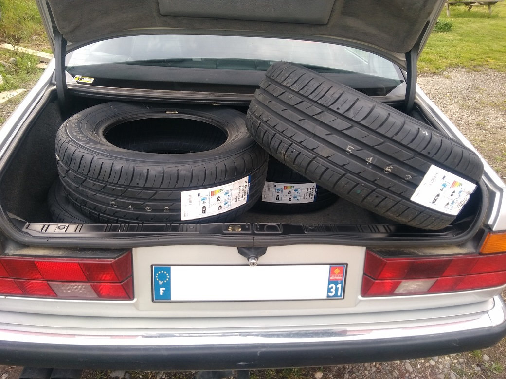 Pour la 750i grise, remplacement des quartes pneus...mais ils ne rentre pas dans le coffre...