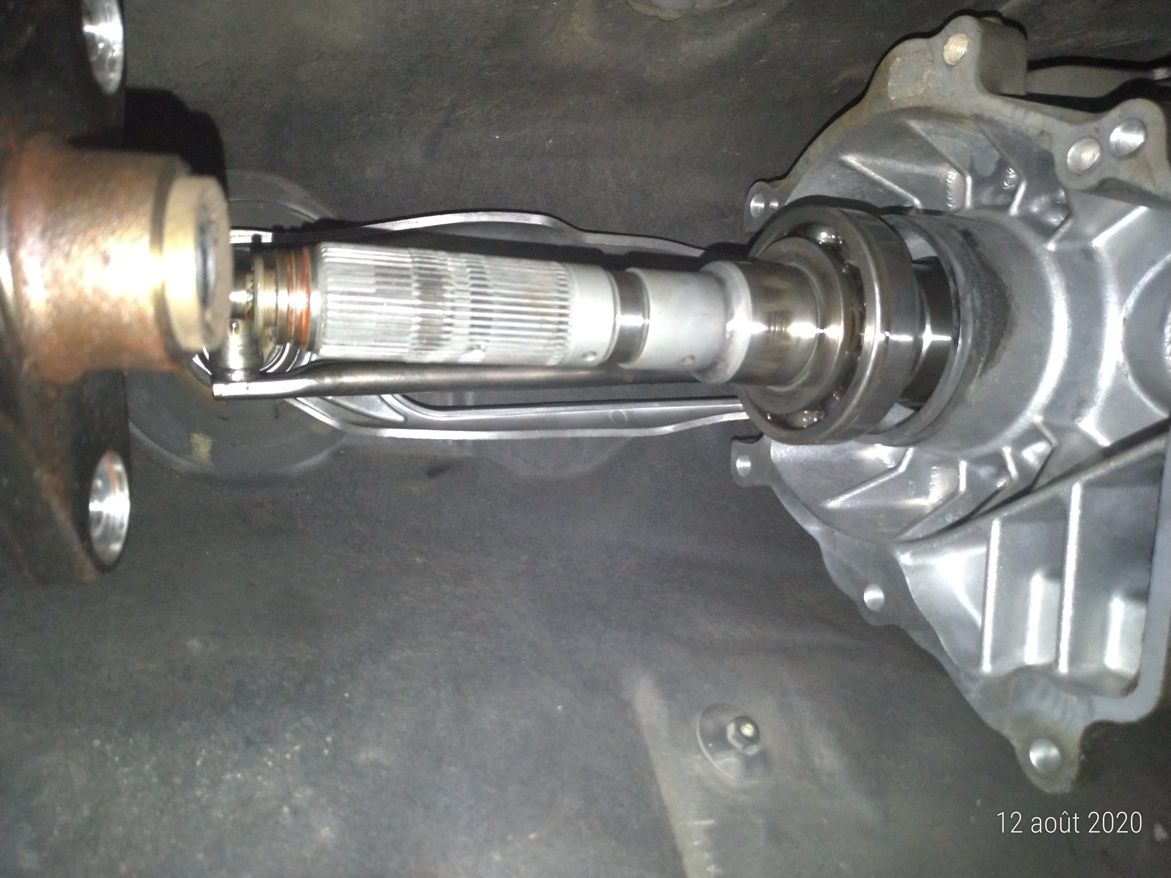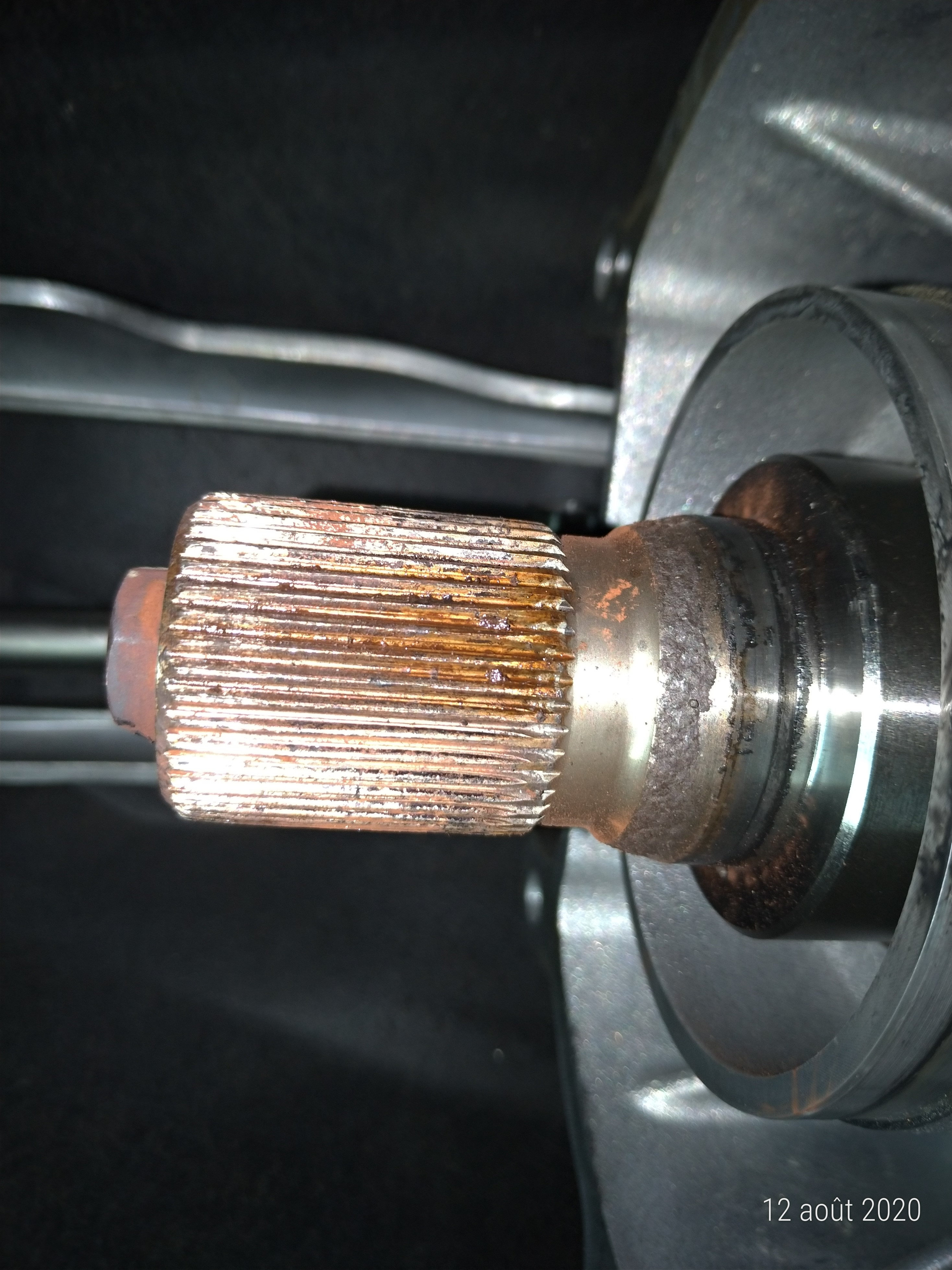 Je viens de nettoyer la sortie d'arbre de la BVM et j y ai inseré l'arbre de ma boite de transfert d'origine et j'ai du jeu de 1mm voir plus.